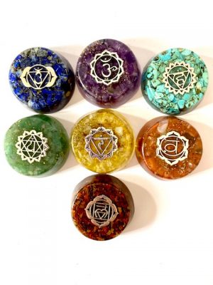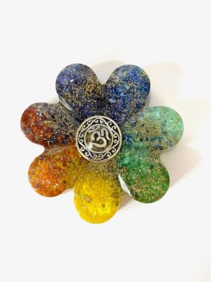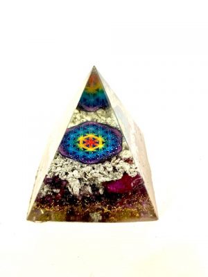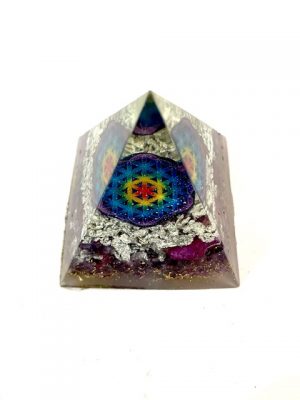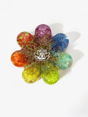 Orgon con iman con Flor de la Vida y cuarzos siete chakras