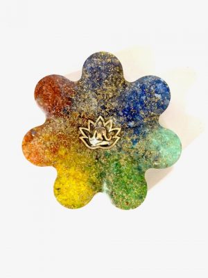 Flor de Orgon de 7 chakras con símbolo flor de loto dorado