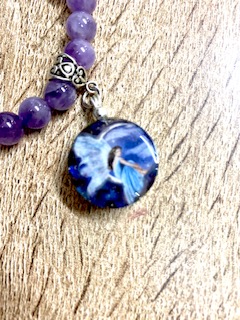 Pulsera de cuarzo amatista con orgon de Hadas. Medida de la esfera 6mm aprox