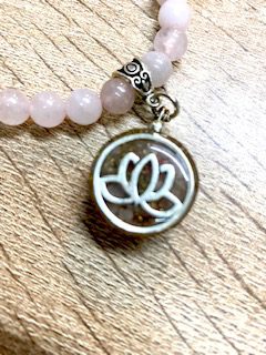 Pulsera de cuarzo rosa con orgon de Flor de Loto. Medida de la esfera 6mm aprox